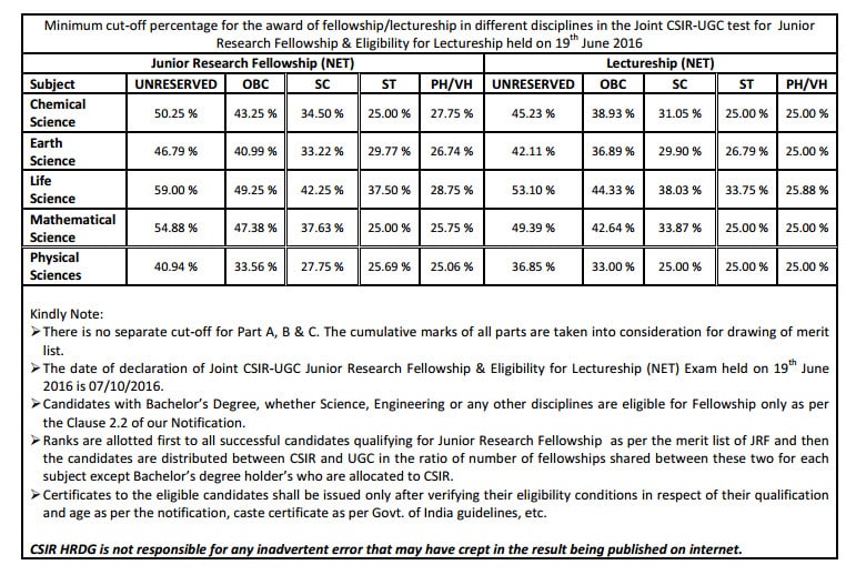 […] CSIR NET JRF & LS Cut Off Marks Till Dec 2015… […]