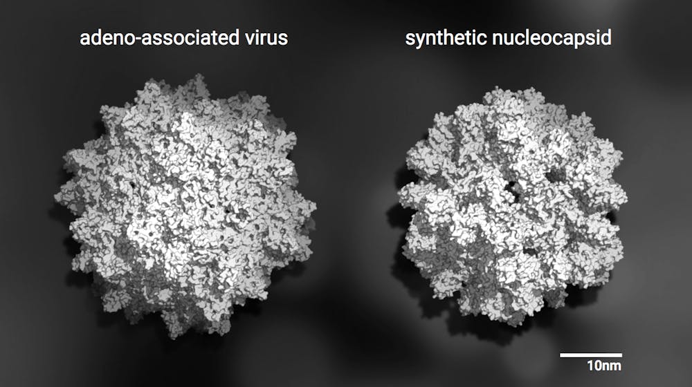 Now, an international team has developed synthetic nucleocapsids, which are computationally designed icosahedral protein assemblies with positively charged inner surfaces that can package their own full-length mRNA genomes.