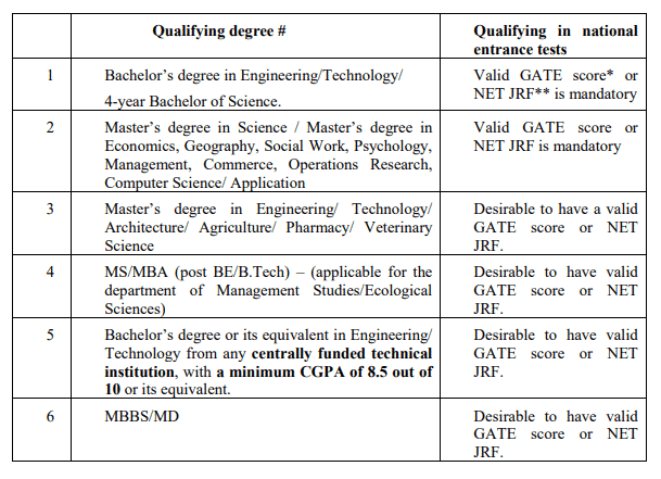 Applications are invited for Entry to the Research Programs and External Registration Program (ERP) in the Institute. Qualifications for eligibility, specializations, areas of research, number of seats and additional details are Provided within our site http://www.iisc.ac.in → Admissions → Programmes → Research programs → Eligibility