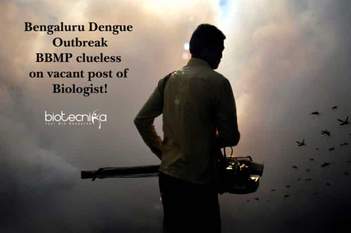The Bengaluru city accounts for an overwhelming 61% i.e, about 4,935 cases out of the 8,084 dengue cases reported in Karnataka till August 16 this year. In the midst of Dengue outbreak, the only post of a biologist in the mosquito control unit of Bruhat Bengaluru Mahanagara Palike (BBMP) which was sanctioned under the Urban Vector-Borne Diseases (VBD) scheme lies vacant. A biologist might have aided in discerning a pattern in dengue incidence and assisted efficiently as well as a targeted treatment.
