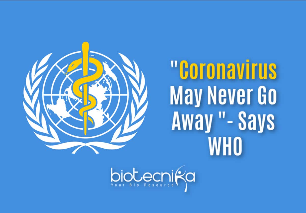 WHO emergencies expert Mike Ryan told an online briefing that the virus might never go away; it may become just another endemic virus in our communities.