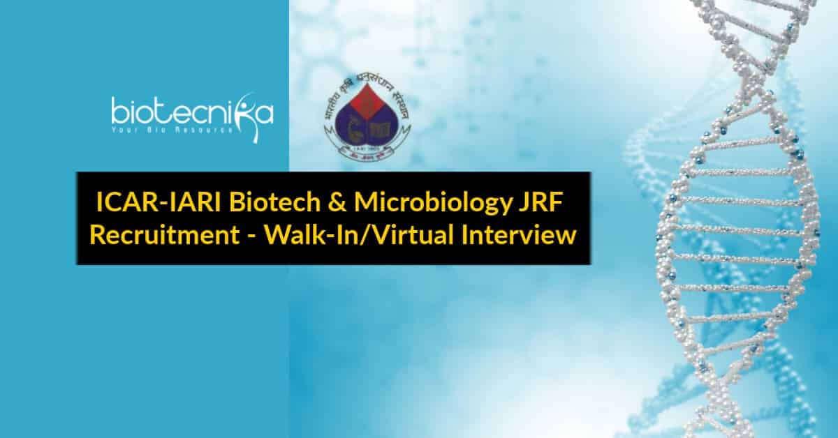 Editor’s Note: ICAR-IARI Biotech & Microbiology JRF Recruitment – Walk-In/Virtual Interview. Please make sure that you are subscribed to the Biotecnika Times Newsletter and our YouTube channel to be notified of all of the latest in the industry. Follow us on all of our social media like Twitter, Facebook and Instagram.