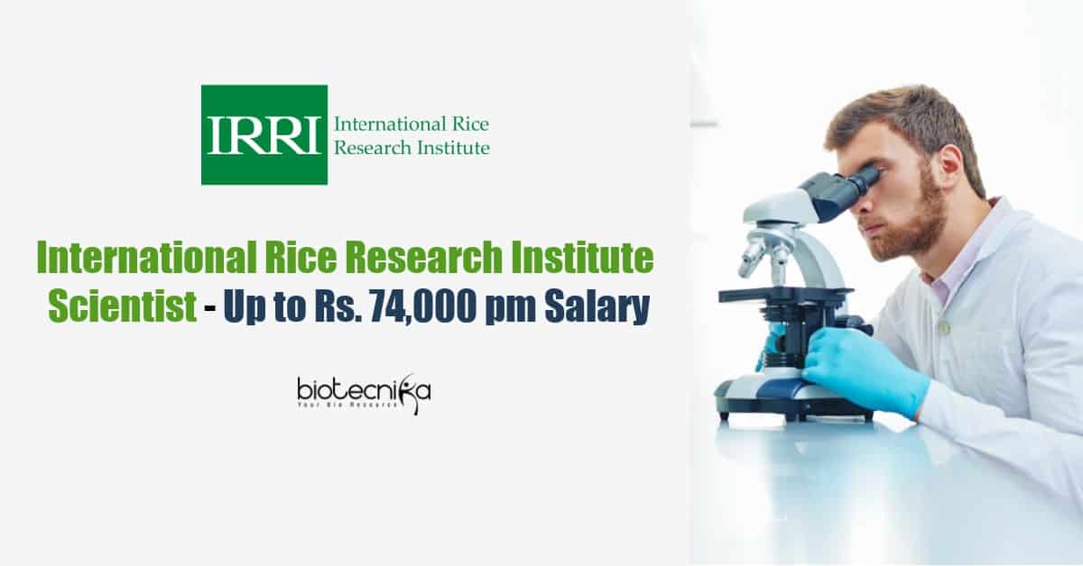 IRRI Biotech Assistant Scientist With Rs. 74,300 pm Pay. MSc Biotechnology candidates are encouraged to apply online for an Assistant Scientist vacancy at The International Rice Research Institute (IRRI). Interested and eligible candidates are encouraged to apply online as per the details given below: