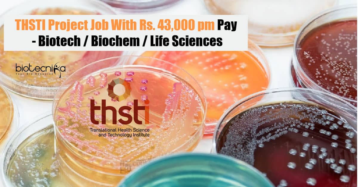 THSTI Project Job W/Rs. 43,000 pm Pay – Biotech / Biochem / Life Sciences