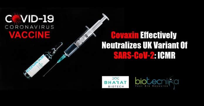 Covaxin effectively neutralizes UK variant of SRAS-CoV-2: ICMR