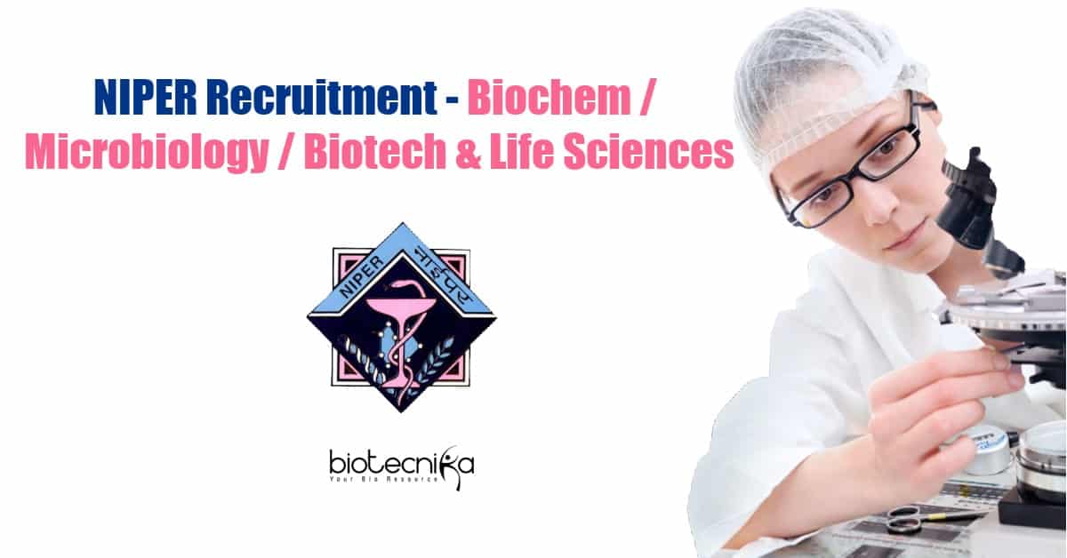 NIPER Recruitment – Biochem / Microbio / Biotech & Life Sciences