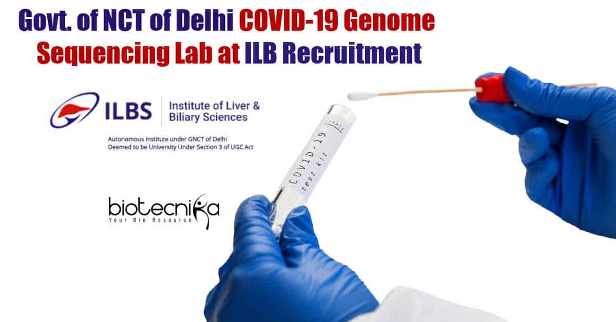 Applications are welcomed for the following posts on a contractual basis under the project titled “Genome sequencing Lab at ILBS for COVID-19 under Govt. of NCT of Delhi”.