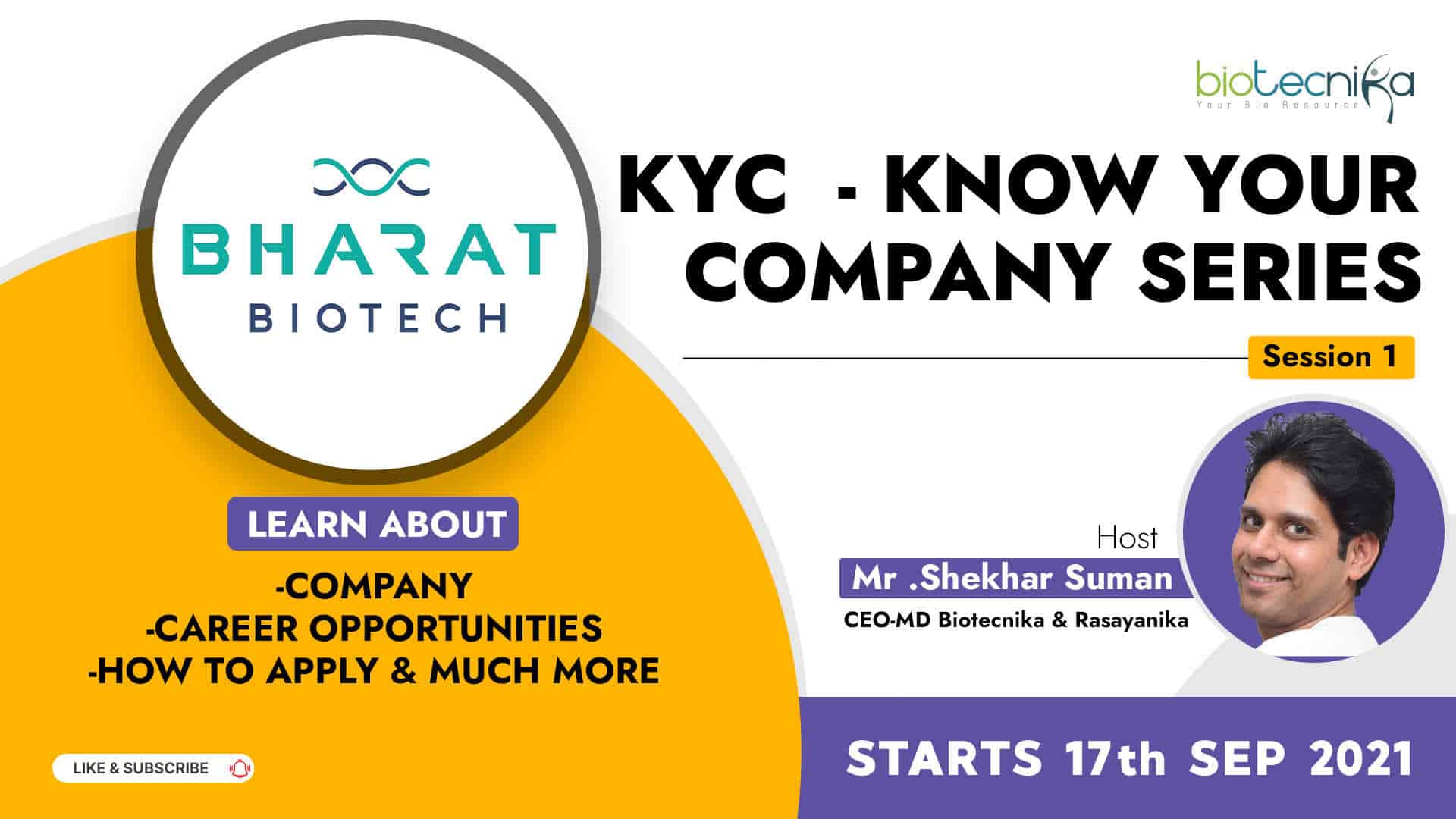 This Teacher’s Day Biotecnika announced the Free Know Your Biotech Company (KYC) Series for all students, Bio-professionals, and bioscience enthusiasts who are set out to secure their dream jobs in the biosciences industry!