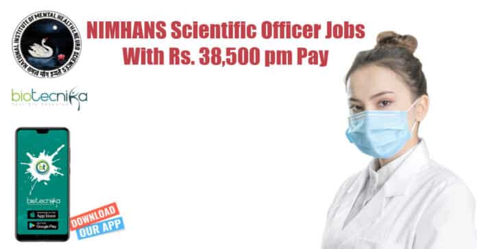 NIMHANS Scientific Officer Jobs With Rs. 38,500 pm Pay, Applications Invited