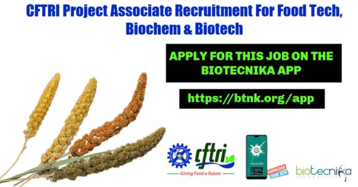 CFTRI Project Associate Recruitment For Food Tech, Biochem & Biotech MSc Food Tech, Biochemistry, Biotech Jobs. CSIR-CFTRI Job Openings. Project Jobs. Interested and eligible applicants can check out all of the details on the same below: