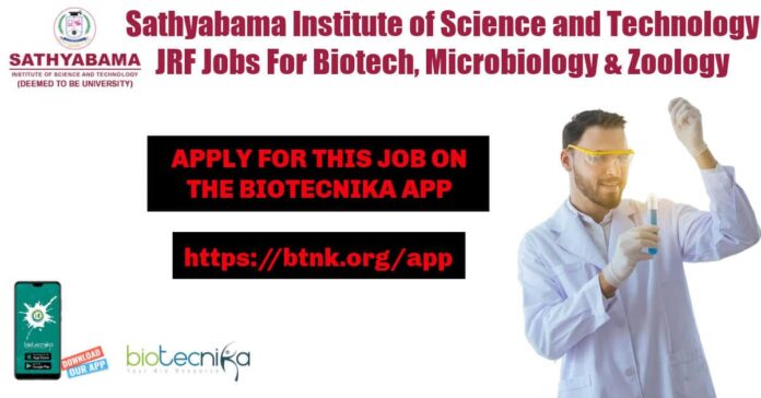 Sathyabama JRF Jobs – MSc Biotech, Zoology & Microbio Apply