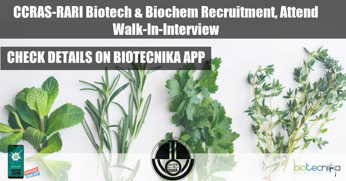 CCRAS-RARI Biotech & Biochem Recruitment, Attend Walk-In-Interview