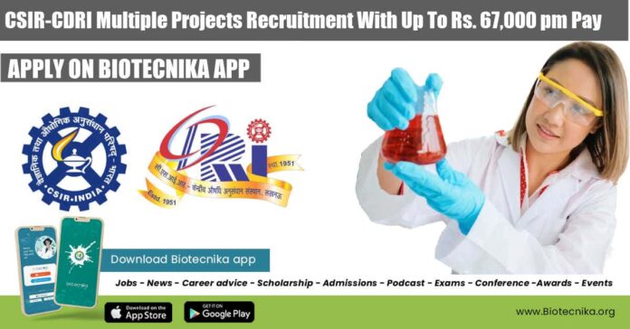 CSIR-CDRI Project Jobs With Up To Rs. 67,000 pm Pay, Apply Online