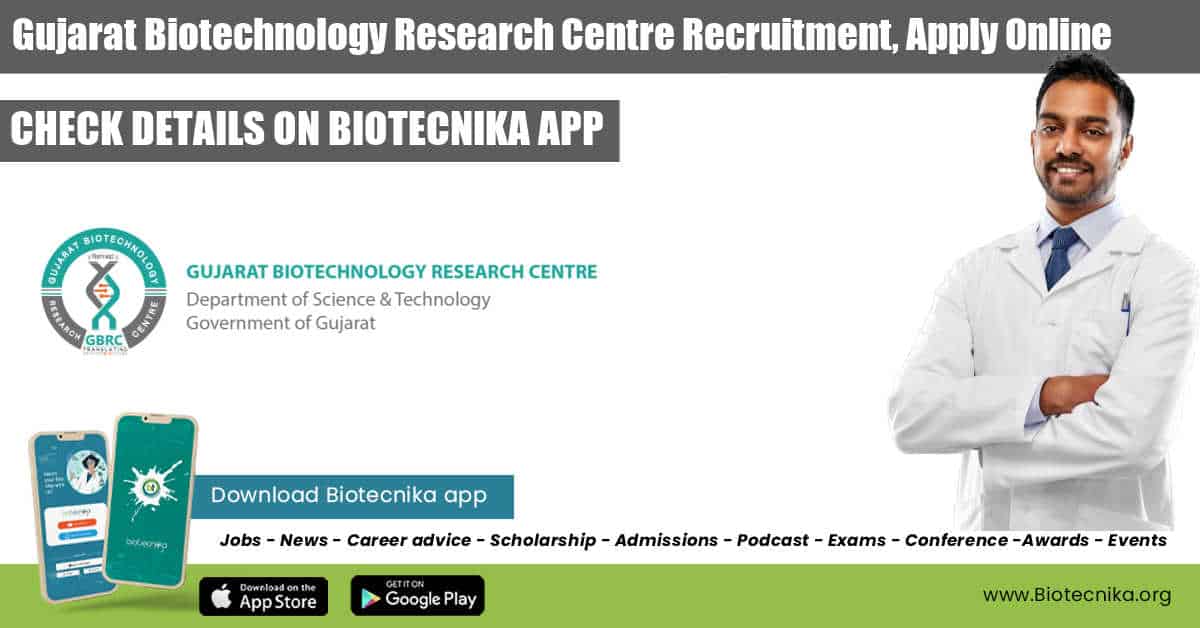 GBRC Careers – MSc/ MTech & PhD Research Job Openings. DST, Government of Gujarat – Gujarat Biotechnology Research Centre Research job for MSc/ MTech & PhD Biotechnology/ Bioinformatics/ /Biochemistry/ Human Genetics/ Biological Sciences. Interested and eligible applicants can check out all of the details on the same below