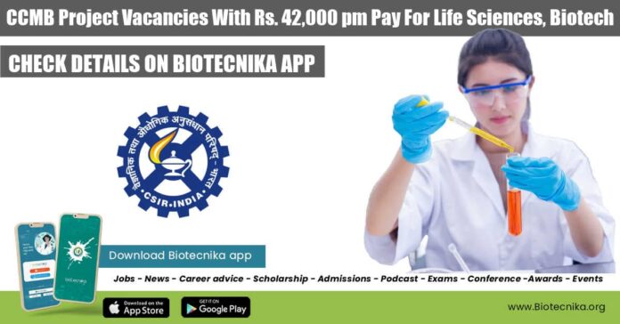 CCMB Project Vacancies With Rs. 42,000 pm Pay For Life Sciences, Biotech