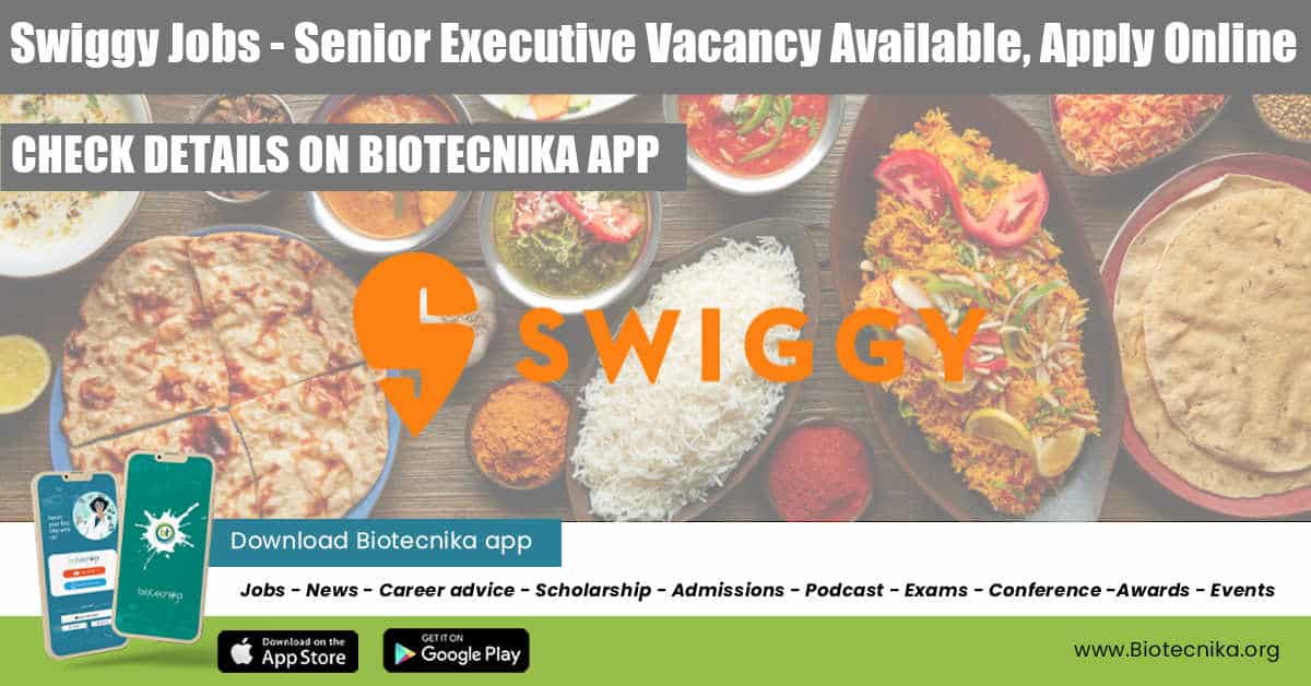 Editor’s Note: Swiggy Jobs – Senior Executive Vacancy Available, Apply Online. Please make sure that you are subscribed to the Biotecnika Times Newsletter and our YouTube channel to be notified of all of the latest in the industry. Follow us on all of our social media like Twitter, Telegram, Facebook and Instagram.