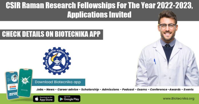 CSIR Raman Research Fellowships 2022-2023 – Applications Invited. Raman Research Fellowships for the year 2022-2023. Interested applicants can check out all of the details on the eligibility and application process below
