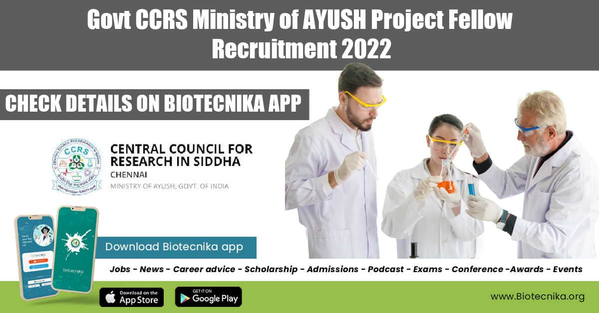 Editor’s Note: Govt CCRS Project Job at Siddha Medicinal Plants Garden. Please make sure that you are subscribed to the Biotecnika Times Newsletter and our YouTube channel to be notified of all of the latest in the industry. Follow us on all of our social media like Twitter, Telegram, Facebook and Instagram.