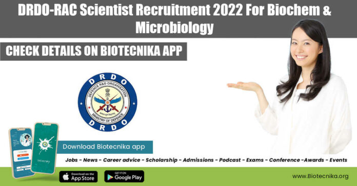 DRDO-RAC Scientist Recruitment 2022 For Biochem & Microbiology