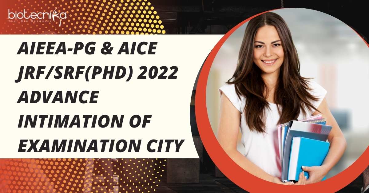 Advance Intimation of Examination City allotted to the applicants of the All India Entrance Examination For Admission [AIEEA]-PG & All India Competitive Examinations (AICE)- JRF/SRF(Ph.D)- 2022