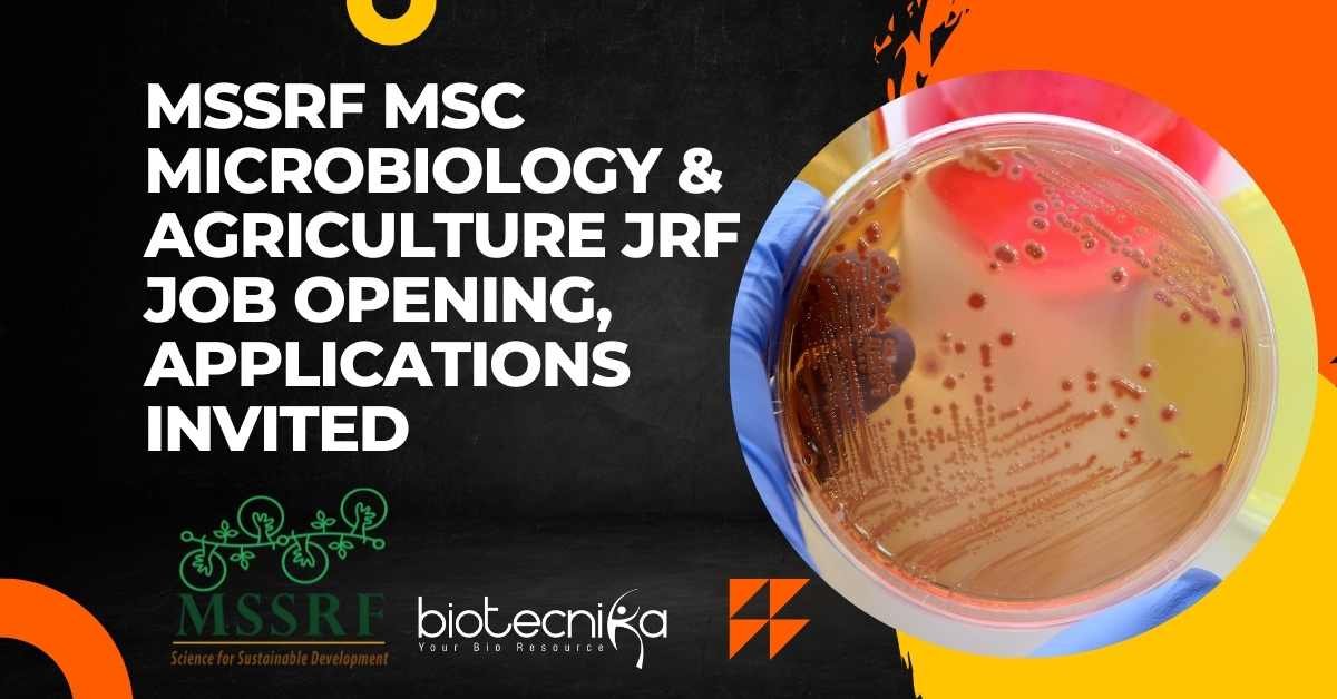 MSSRF MSc Microbiology & Agriculture JRF Job Opening, Applications Invited