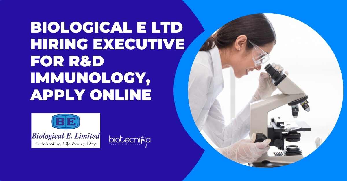 Editor’s Note: Biological E Ltd Hiring Executive For R&D Immunology, Apply Online. Please ensure that you are subscribed to the Biotecnika Times Newsletter