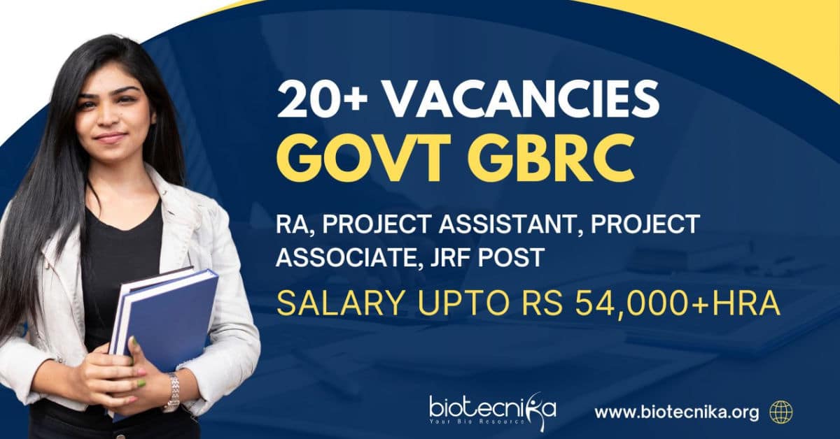 Latest JRF Research Jobs. Research Associate (09), Project Assistant (01), Project Associate II (01), Junior Research Fellow (09). Gujarat Biotechnology Research Centre invites applications from the interested deserving candidate for the post of DM (01), RA (09), PA (01), PA II (01) and JRF (09) positions in below mentioned research projects. For details of the projects post, essential qualification, and fellowship is given below: