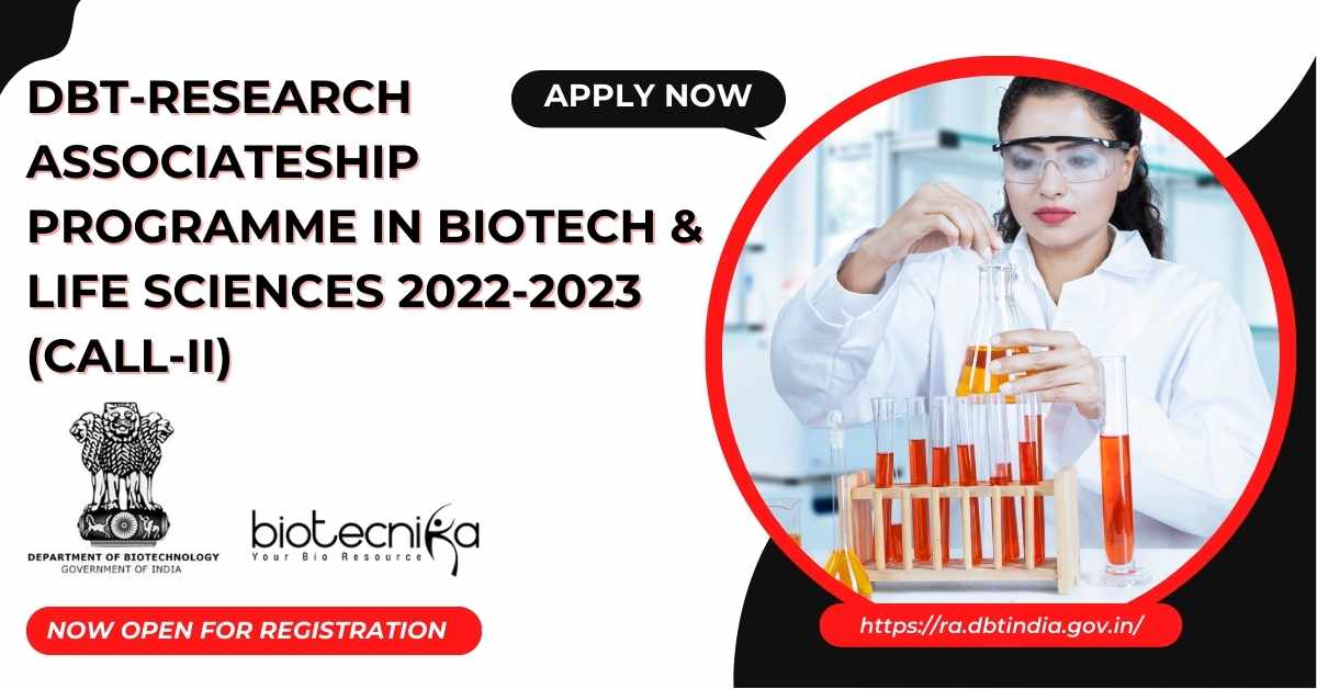 DBT RA Programme 2022-2023 – DBT-Research Associateship Programme 2022. DBT-Research Associateship Programme in Biotech & Life Sciences 2022-2023 (Call-II). Interested and eligible applicants can check out all of the details on the same below