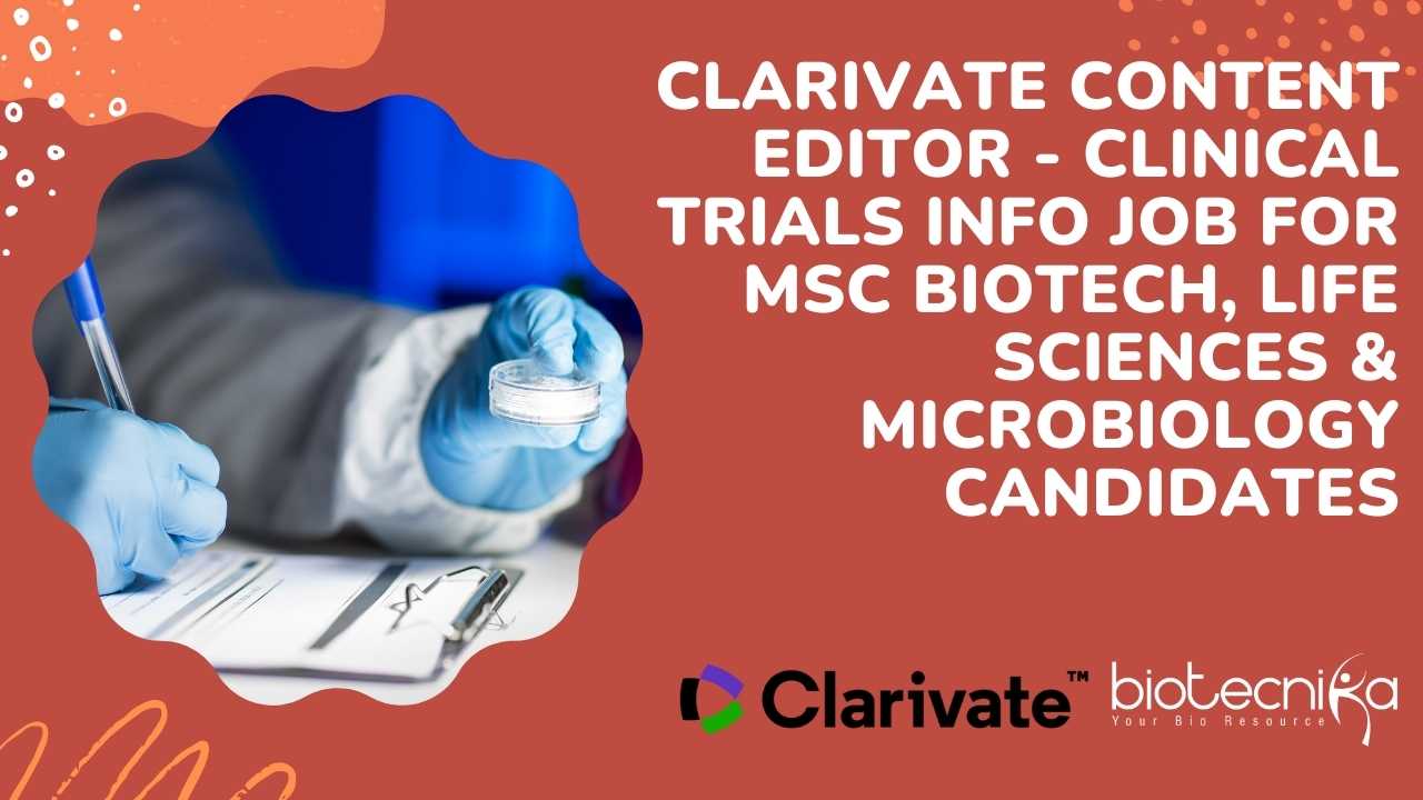 Clarivate Content Editor – Clinical Trials Info Job For MSc Biotech, Life Sciences & Microbiology Candidates