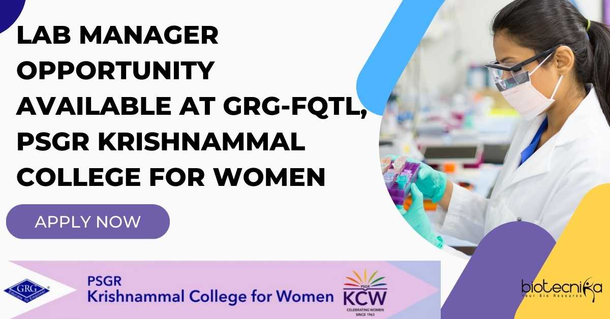 PSGR Krishnammal College Lab Manager Role Available, Applications Invited
