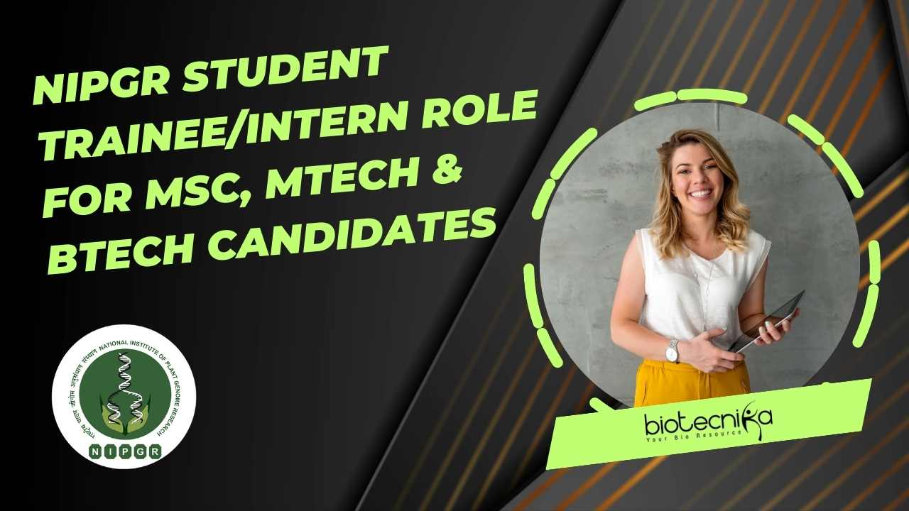NIPGR Student Trainee Intern Role For MSc, MTech & BTech Candidates. B.Tech /B.Eng / M.Sc. in Molecular Biology/Biotechnology/Biochemistry/Plant Science/Life Sciences/ Bioinformatics jobs at NIPGR. Interested and eligible applicants can check out all of the details on the same below