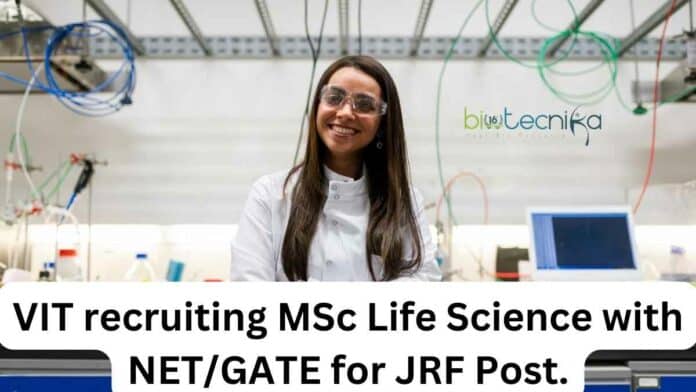 VIT Recruiting Life Science Candidates. The skills required are : Candidates having knowledge in Nanomaterial synthesis and/or Biosensors will be preferred.