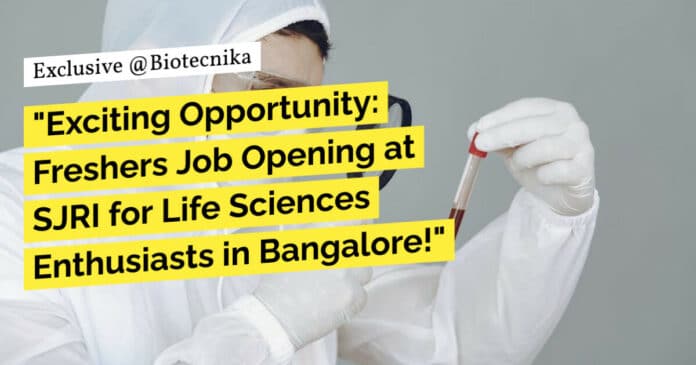 Freshers Job Opening SJRI for Life Sciences Enthusiasts in Bangalore!