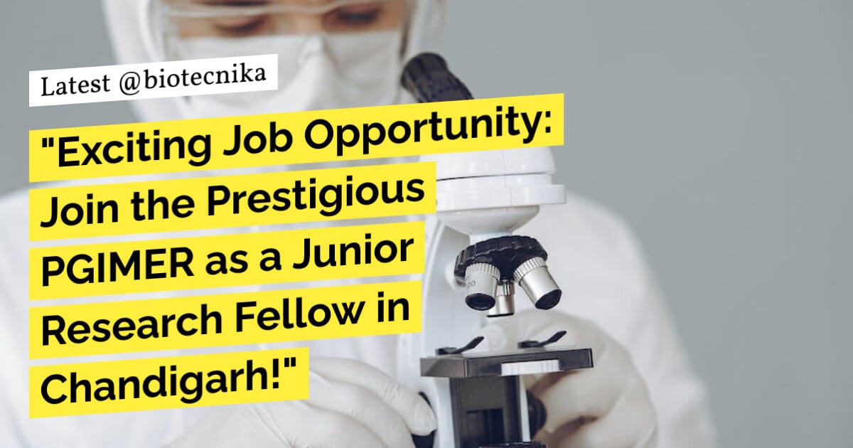 Keywords: PGIMER job vacancy, Junior Research Fellow, Department of Experimental Medicine & Biotechnology, Chandigarh, ICMR funded project, Genetics, Life Sciences, Microbiology, Biochemistry, Immunology, Biotechnology. PGIMER Genetics JRF Job – Life Sciences Apply. Please ensure you are subscribed to the Biotecnika Times Newsletter and our YouTube channel to be notified of the latest industry news. Follow us on social media like Twitter, Telegram, Facebook