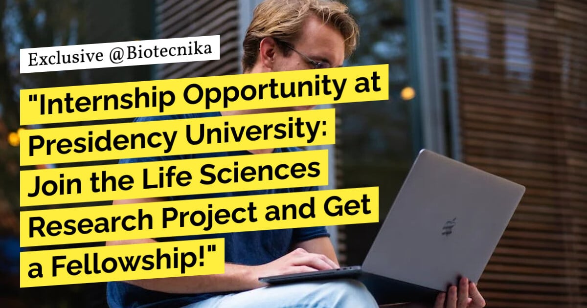 Keywords: Life Sciences, Student Intern, Presidency University, Fellowship, DST-SERB, Research Project. Life Sciences Student Intern Opportunity at Presidency University – Fellowship Available. Please ensure you are subscribed to the Biotecnika Times Newsletter and our YouTube channel to be notified of the latest industry news. Follow us on social media like Twitter, Telegram, Facebook