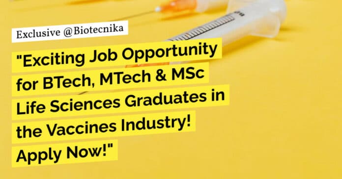 are encouraged to send their CVs in the proper format. We kindly request that you avoid spamming multiple applications, as doing so may result in the permanent blacklisting of your CV at our company. This action could restrict your ability to apply for future vacancies within our organization. We appreciate your cooperation in ensuring a fair and efficient recruitment process. Thank you for your understanding.Keywords: qc, biochemical testing, invitro testing, quality control, vaccines. Biological E Limited Executive Job for BTech, MTech & MSc Life Sciences. Please ensure you are subscribed to the Biotecnika Times Newsletter and our YouTube channel to be notified of the latest industry news. Follow us on social media like Twitter, Telegram, Facebook