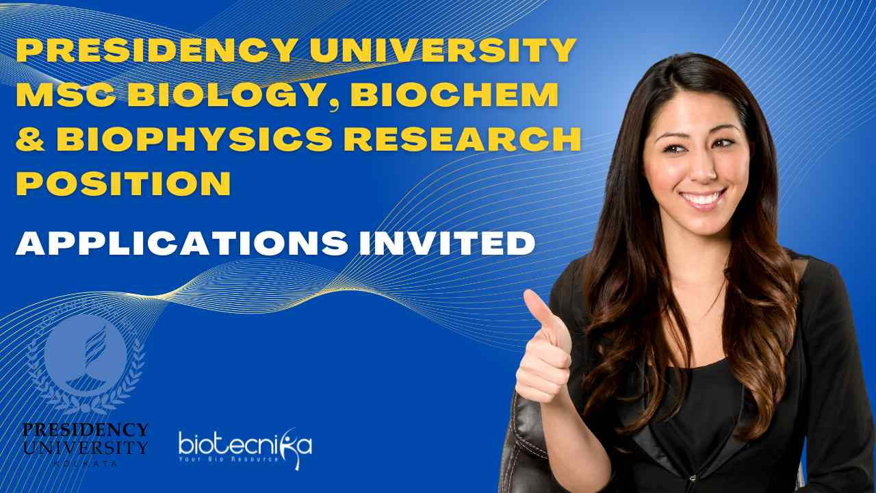 Presidency University MSc Biology, Biochem & Biophysics Research Position – Applications Invited