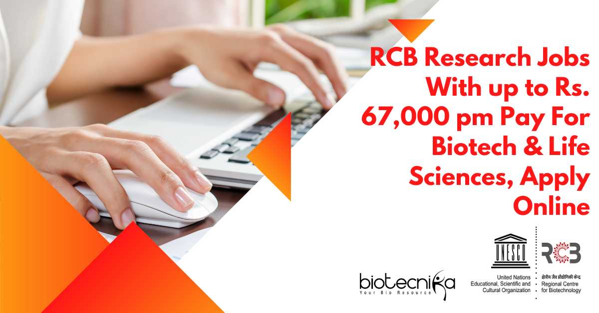 RCB Research Jobs With up to Rs. 67,000 pm Pay For Biotech & Life Sciences, Apply Online