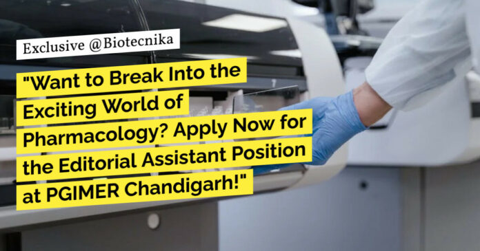 Applications are invited on a plain paper for the contractual post of Editorial Assistant in the Indian Journal of Pharmacology (IJP) under Prof. Bikash Medhi, Chief Editor (Indian Pharmacological Society), Department of Pharmacology, PGIMER, Chandigarh-160012. The post is purely on a temporary basis.