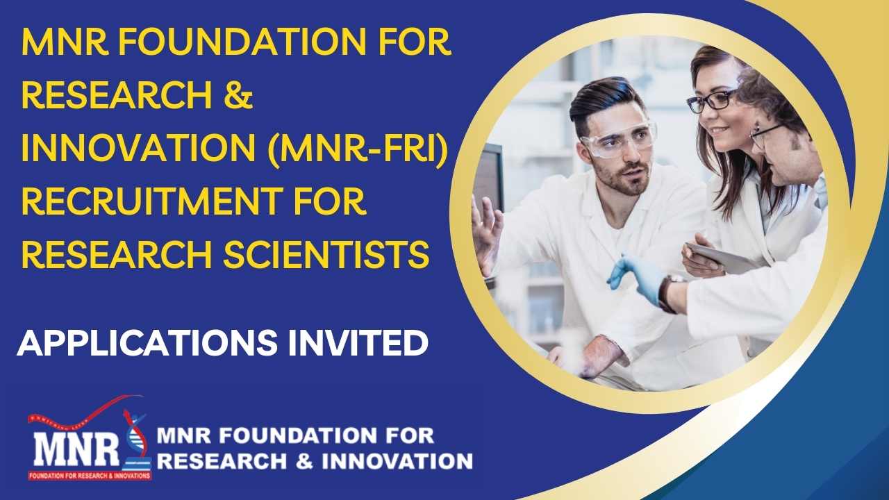 MNR FRI is a section 8 and not-for-profit organization established in 2016 under the umbrella of MNR Group of Institutions, founded by Sri. M. N. Raju on August 15th, 1974, in Hyderabad. MNR-FRI focuses on translational research and seeks to produce more meaningful, applicable results that directly benefit human health. To create a biomedical innovative ecosystem and promote our existing research activities, we are looking for highly talented individuals to carry out research work at our organization.