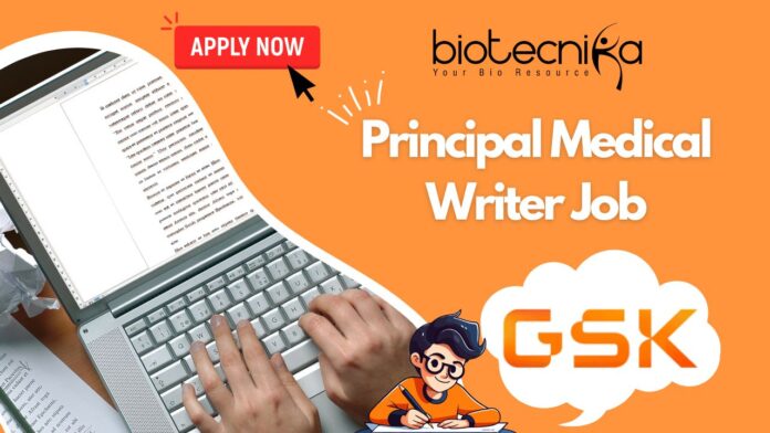 Keywords: GSK job, Principal Medical Writer, clinical regulatory writing, pharmaceutical industry, GSK recruitment