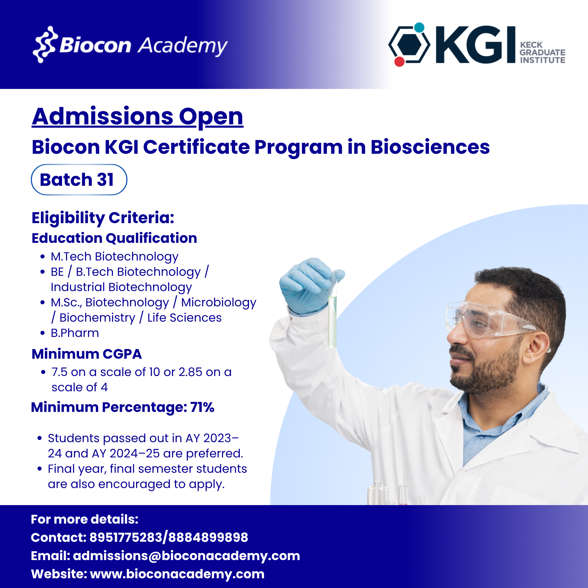 Biocon Batch 31 KGI Certificate Program in Biosciences Admissions Open