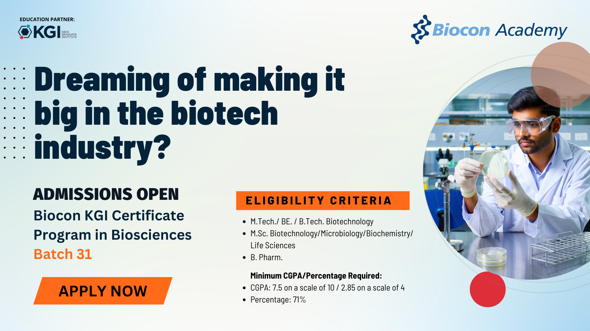 Biocon KGI Certificate Program in Biosciences Batch 31 | Admissions Open