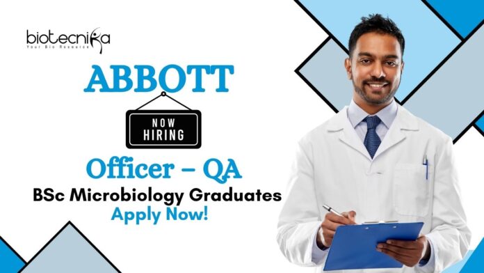 BSc Microbiology Jobs at Abbott | Apply Now For The Officer – QA Role