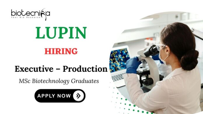 Keywords: Lupin careers, Lupin Biotechnology Jobs, MSc Biotechnology Jobs Latest Vacancies at Lupin | Apply Now, Executive Production job, Pune Biotech, pharmaceutical industry, Job Posting