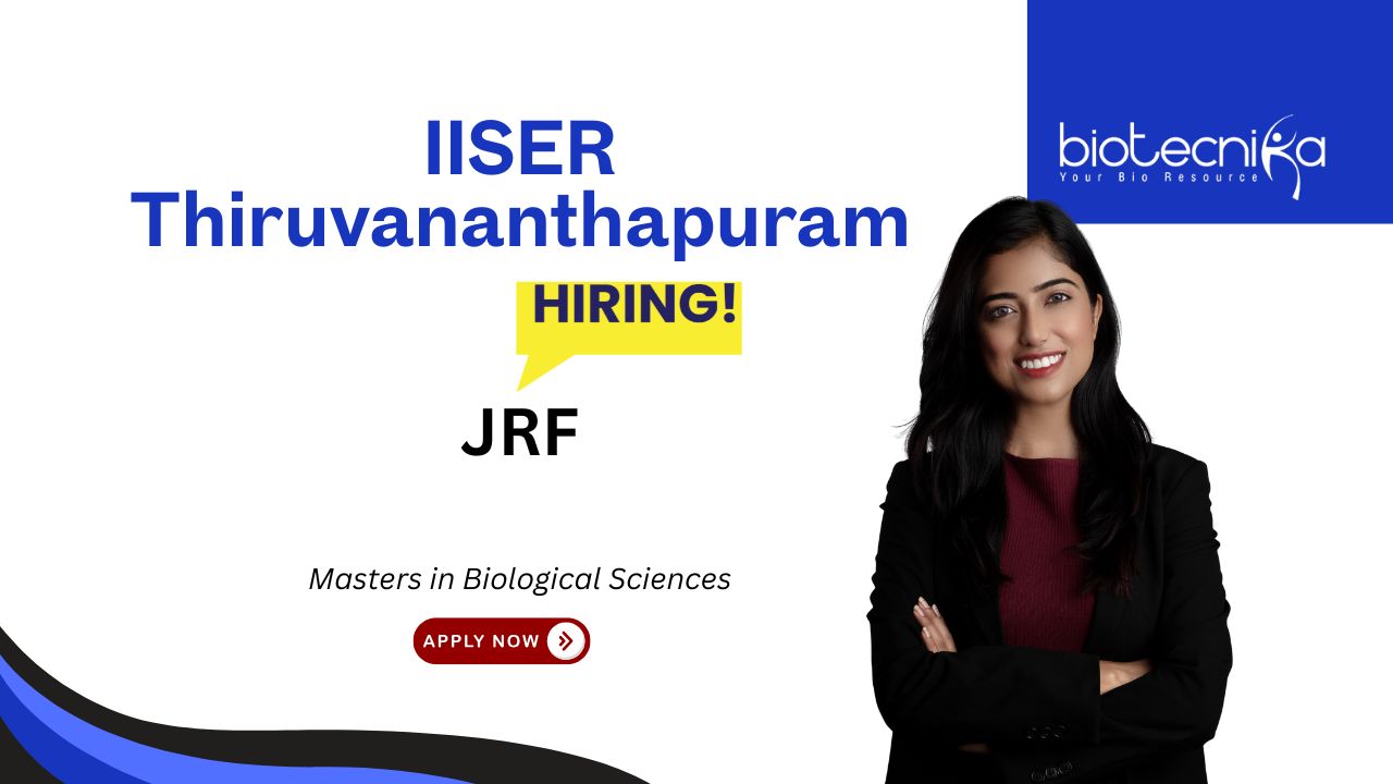 JRF Vacancy 2025 at IISER Thiruvananthapuram | For Masters in Biological Sciences