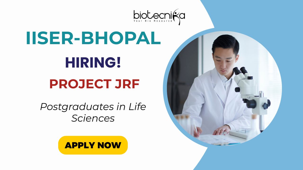 This junior research fellow vacancy at IISER Bhopal involves hands-on molecular biology research with a focus on plant stress physiology. The selected candidate will work closely with the principal investigator to conduct experimental and analytical studies related to the project’s objectives.