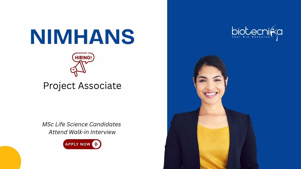 Looking for a life science research job in a premier government institute? The National Institute of Mental Health and Neuro Sciences (NIMHANS), Bengaluru, has announced walk-in interviews for Project Associate positions under the Asian Bipolar Genetics Network (A-BIG-NET) project. These project associate jobs in Bengaluru are ideal for candidates with hands-on research experience in cell culture, stem cell techniques, or human bio-specimen handling who wish to contribute to cutting-edge neurogenetic research.