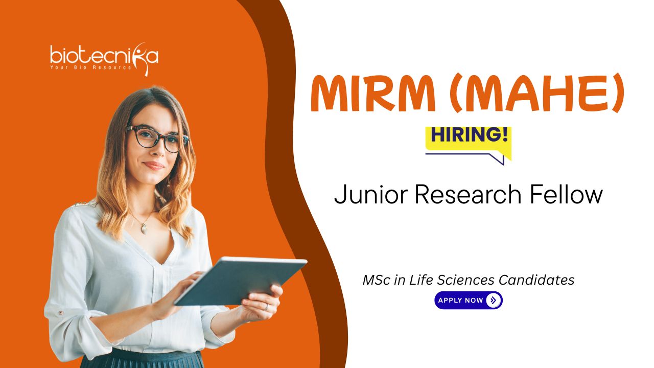 Junior Research Fellow Vacancy at MIRM (MAHE) | Life Sciences