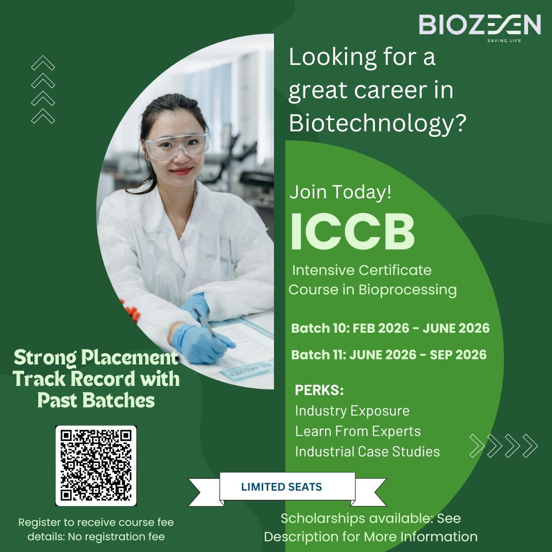 BIOZEEN ICCB Registrations 2026 – BIOZEEN Intensive Certificate Course in Bioprocessing 2026
